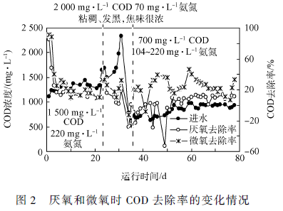 2. 1 厭氧和微氧時(shí)COD 去除率的變化