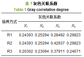 選定絮狀污泥顆粒化過程中4個因素進(jìn)行計(jì)算分析,其中,X1為進(jìn)水COD,X2為有機(jī)負(fù)荷(OLR),X3為EPS含量,X4為水力停留時(shí)間(HRT),利用DPS數(shù)據(jù)處理系統(tǒng)軟件計(jì)算3種培養(yǎng)方式下各因素的灰色關(guān)聯(lián)度系數(shù),結(jié)果如表 1所示.