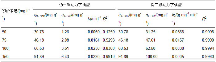 表 1 GEC吸附CR的吸附動力學參數(shù)