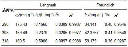 表 2 GEC吸附CR的吸附等溫線參數(shù)