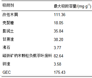 表 3 GEC與其他吸附劑性能的比較